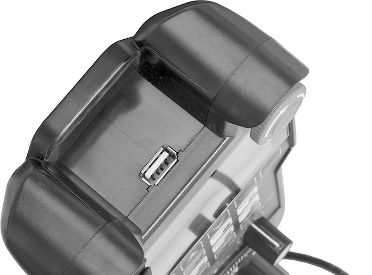 Insert the USB flash drive containing the firmware file into the USB port on top of the DSP controller.